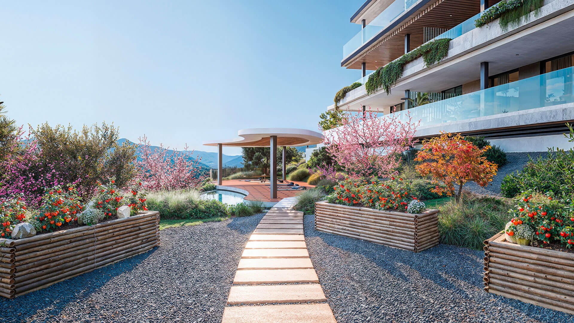 Osiedle oferuje różnorodne rodzaje apartamentów: 2- i 3-pokojowe, dwupoziomowe, parterowe z prywatnymi ogrodami oraz penthousy z solarium. Wszystkie apartamenty posiadają schowek i garaż, a wiele z nich oferuje zachwycające, panoramiczne widoki na Morze Śródziemne. Duże tarasy, otwarte przestrzenie i wysokiej jakości wykończenia gwarantują niezrównany styl życia.