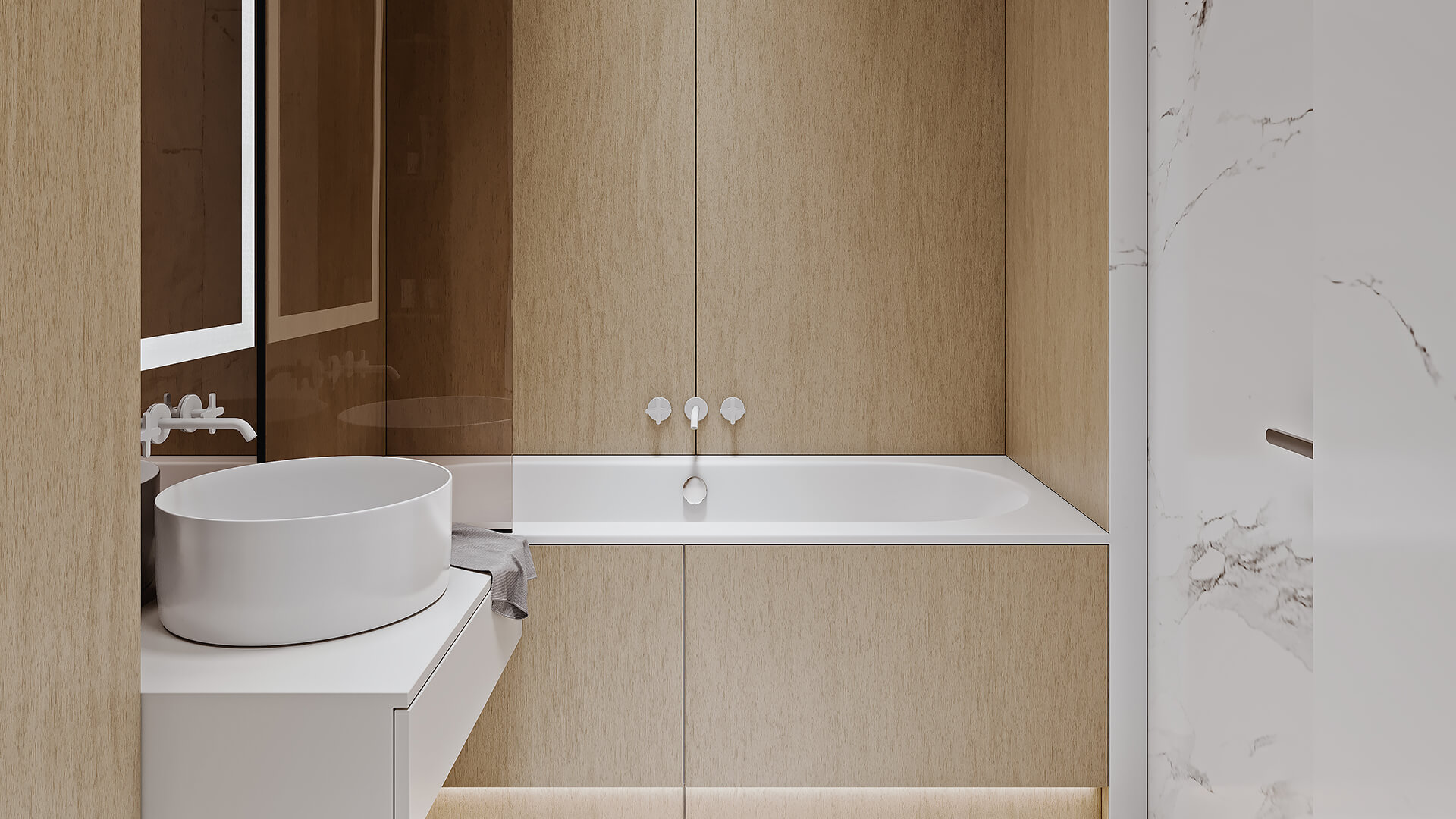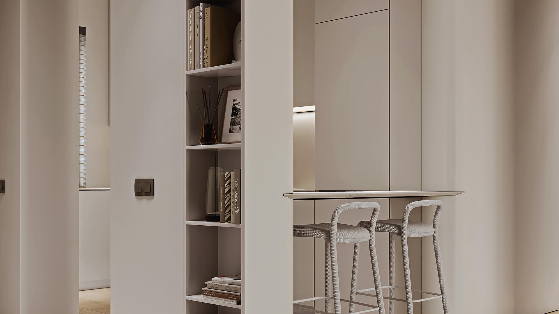 Kuchnia jest w pełni wyposażona w sprzęt AGD i barek śniadaniowy. Sypialnia główna posiada łazienkę.