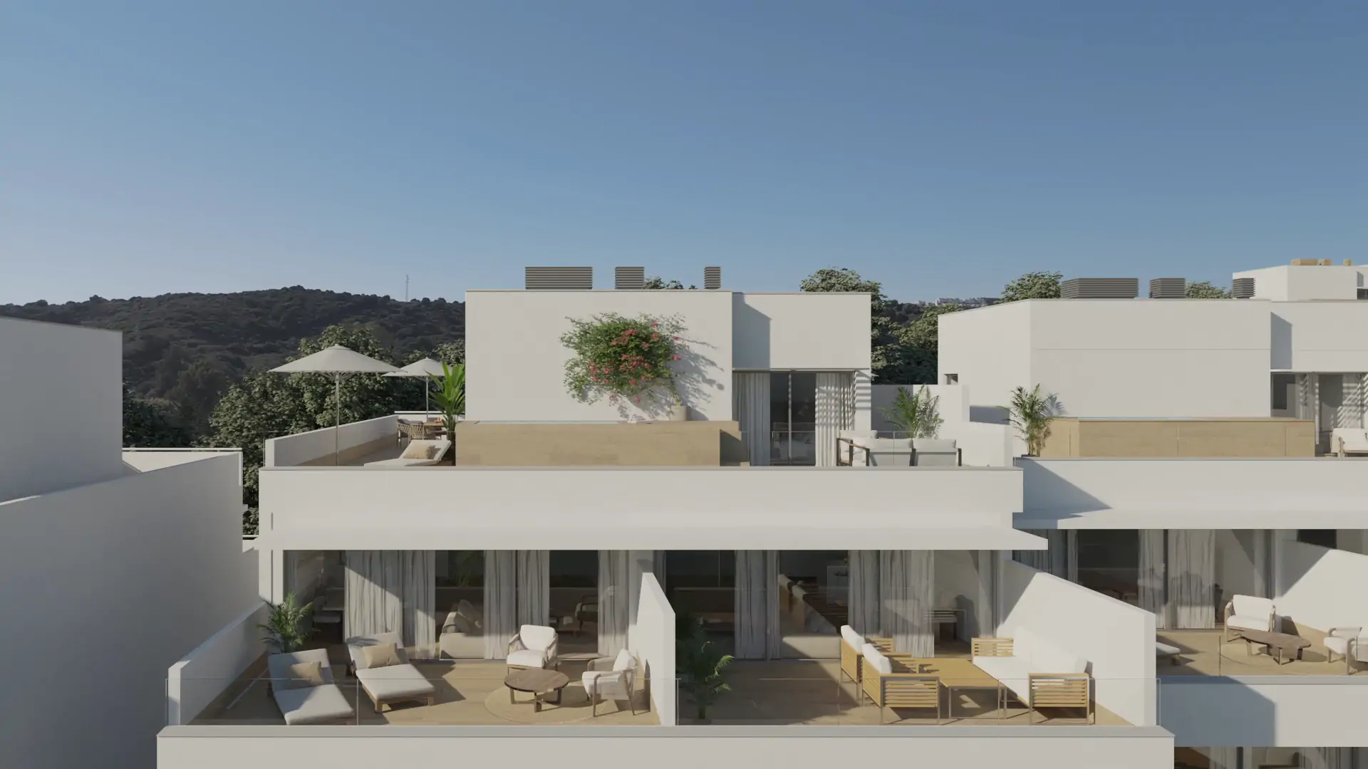 Dzięki uprzywilejowanej lokalizacji, nieruchomości korzystają z naturalnego światła i mają idealną orientację na ciepłe dni. Wiele apartamentów posiada tarasy, z których można podziwiać bajeczne zachody słońca.