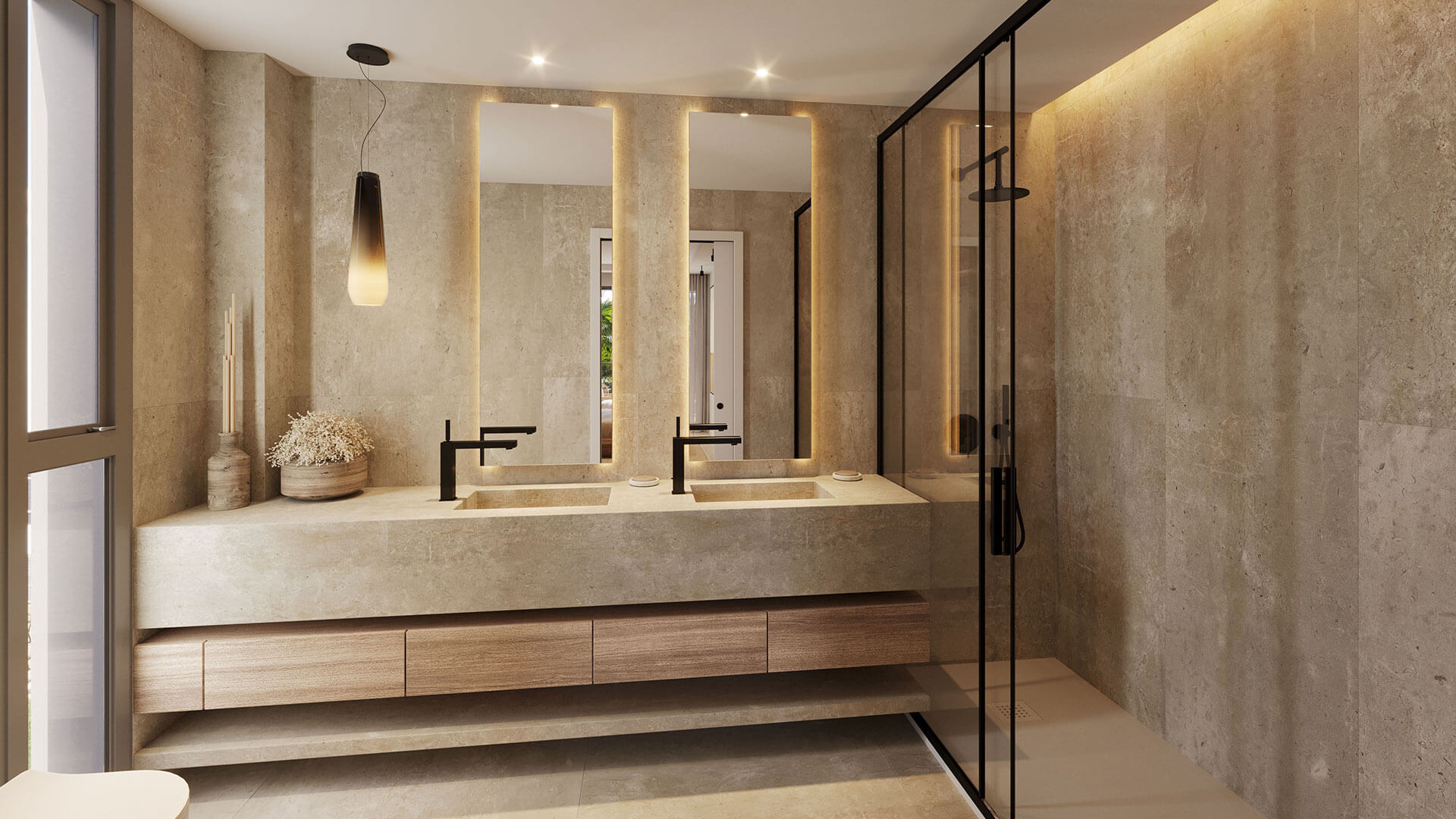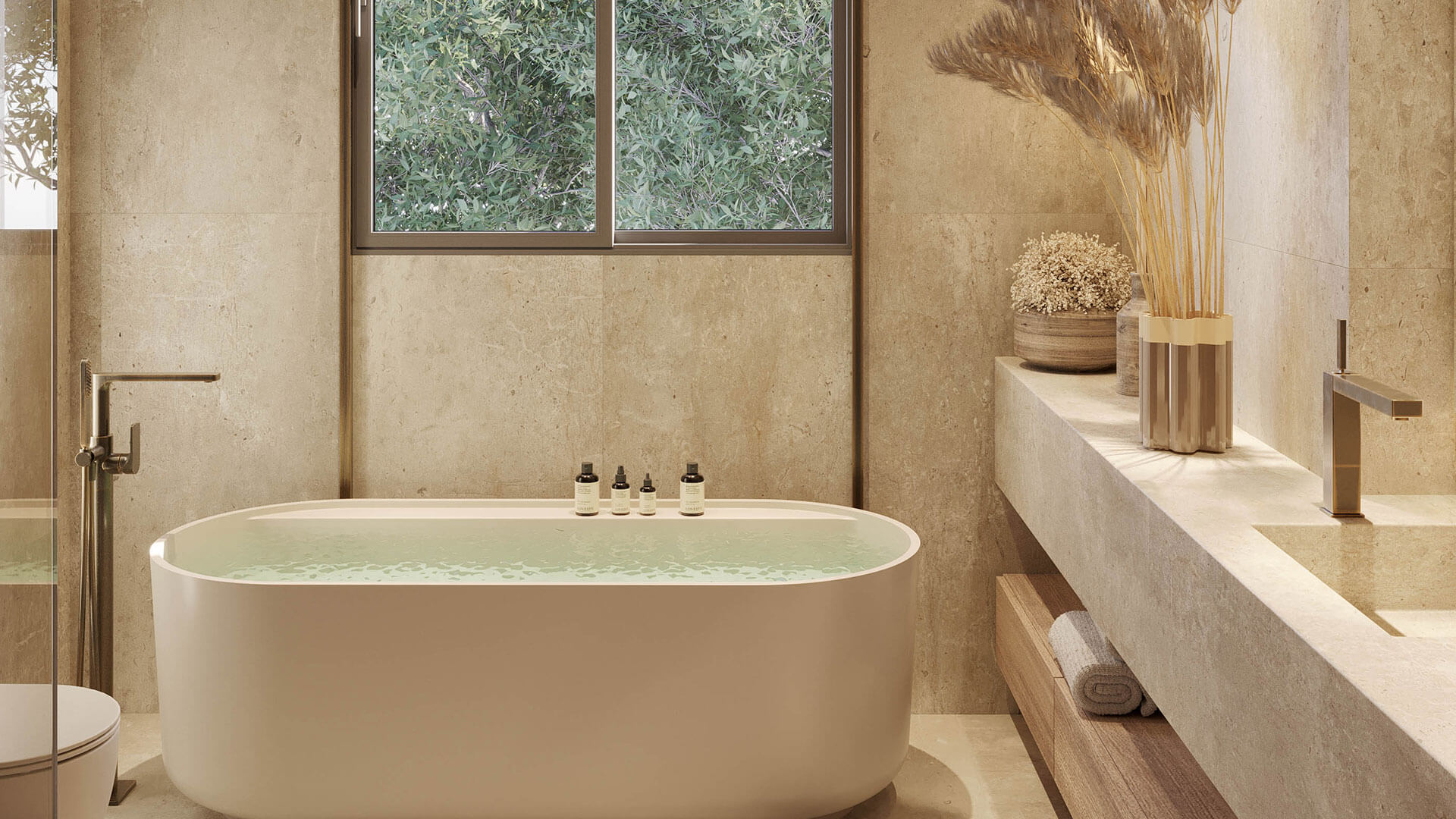 Apartamenty na parterze mają prywatne ogrody i indywidualny basen. Apartamenty na najwyższych piętrach podnoszą poprzeczkę jeszcze wyżej, oferując widok na morze, solarium, tarasy na dachu i opcję kuchni na świeżym powietrzu, aby cieszyć się stylem życia na świeżym powietrzu.