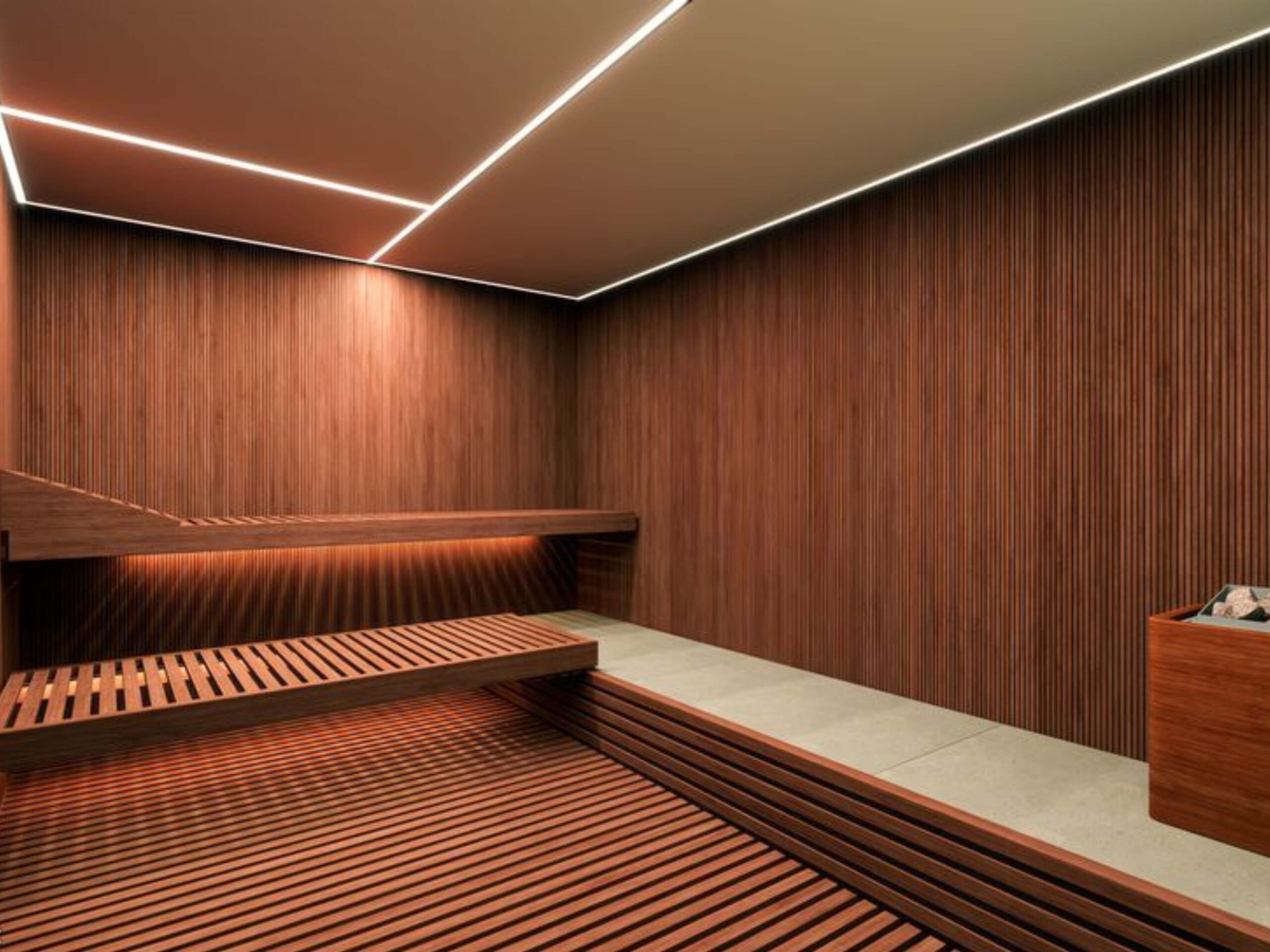 Wspólne przestrzenie do korzystania: basen, sauna i siłownia.