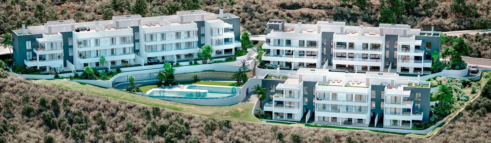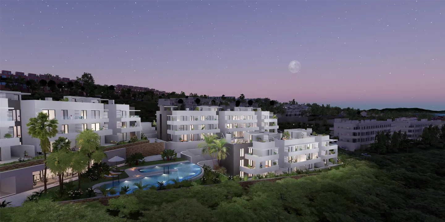 Prezentujemy nowy projekt apartamentowy w Manilva, w pobliżu wybrzeża z widokiem na morze, Gibraltar i Afrykę.