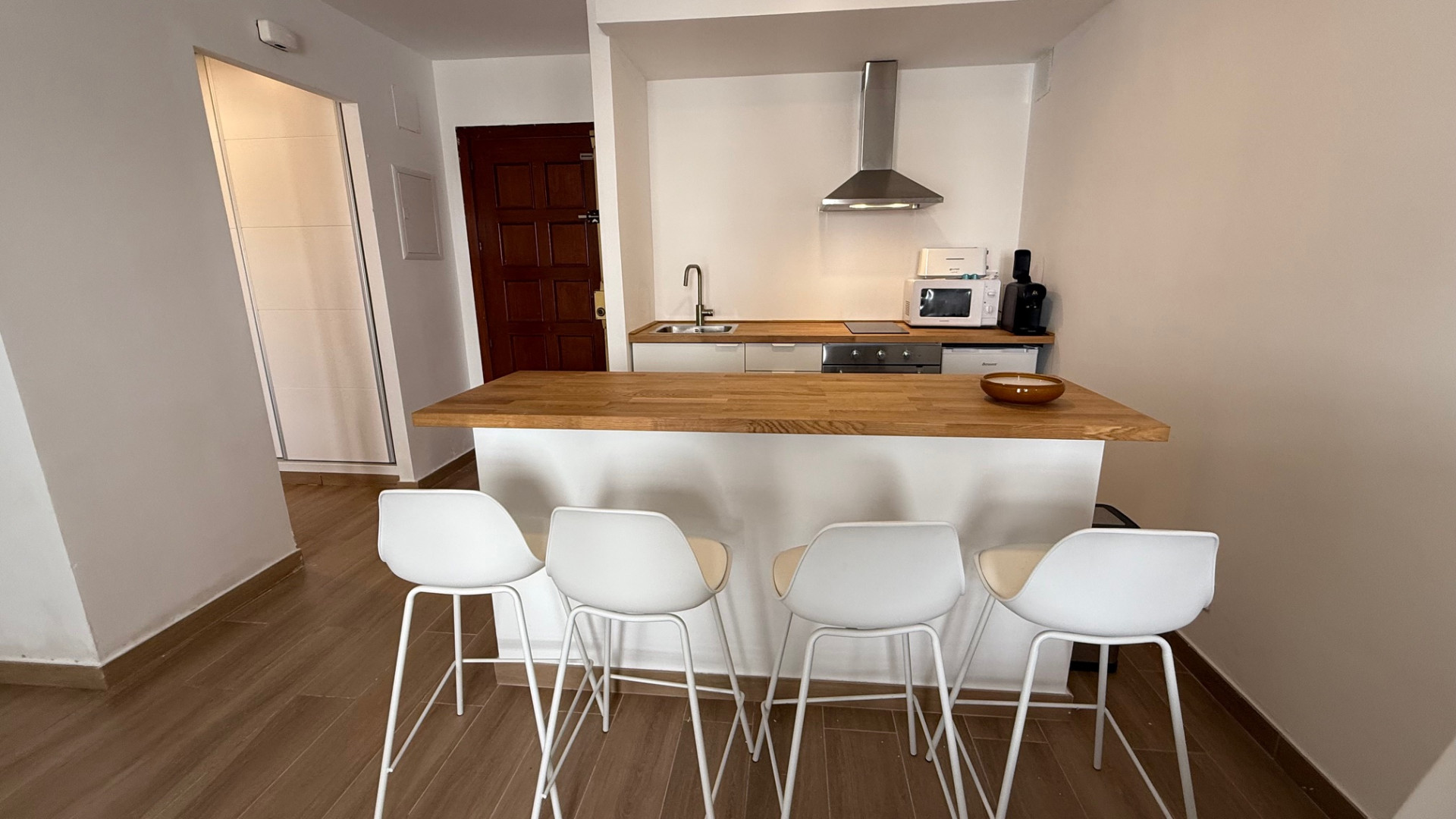 W apartamencie znajduje się sypialnia z łazienką, w pełni wyposażona, nowoczesna kuchnia oraz przestronny salon z wyjściem na słoneczny taras od strony południowo-wschodniej. Nieruchomość została gustownie odnowiona i sprzedawana jest w pełni umeblowana, łącznie z klimatyzacją z funkcją ogrzewania i chłodzenia.