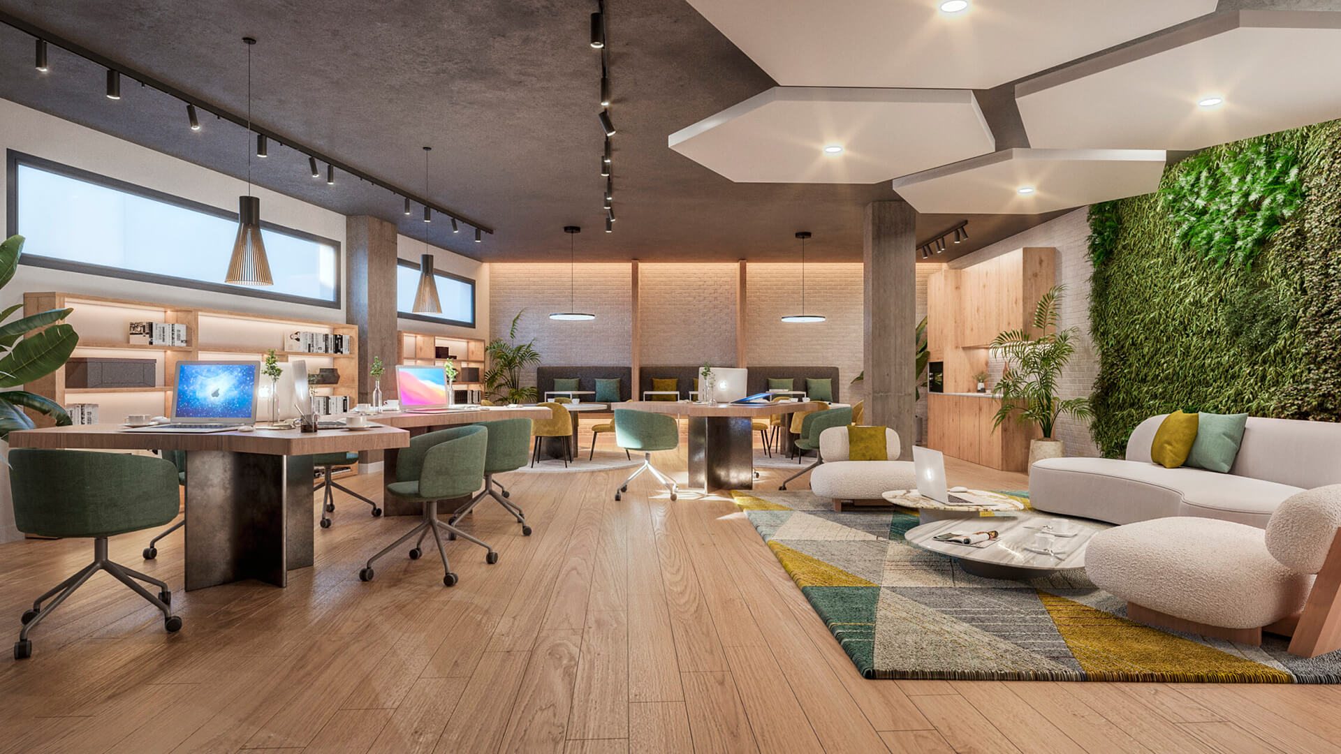 Przestrzenie wspólne są spektakularne i obejmują klub towarzyski, basen zewnętrzny, podgrzewany basen kryty, siłownię i przestrzeń coworkingową.