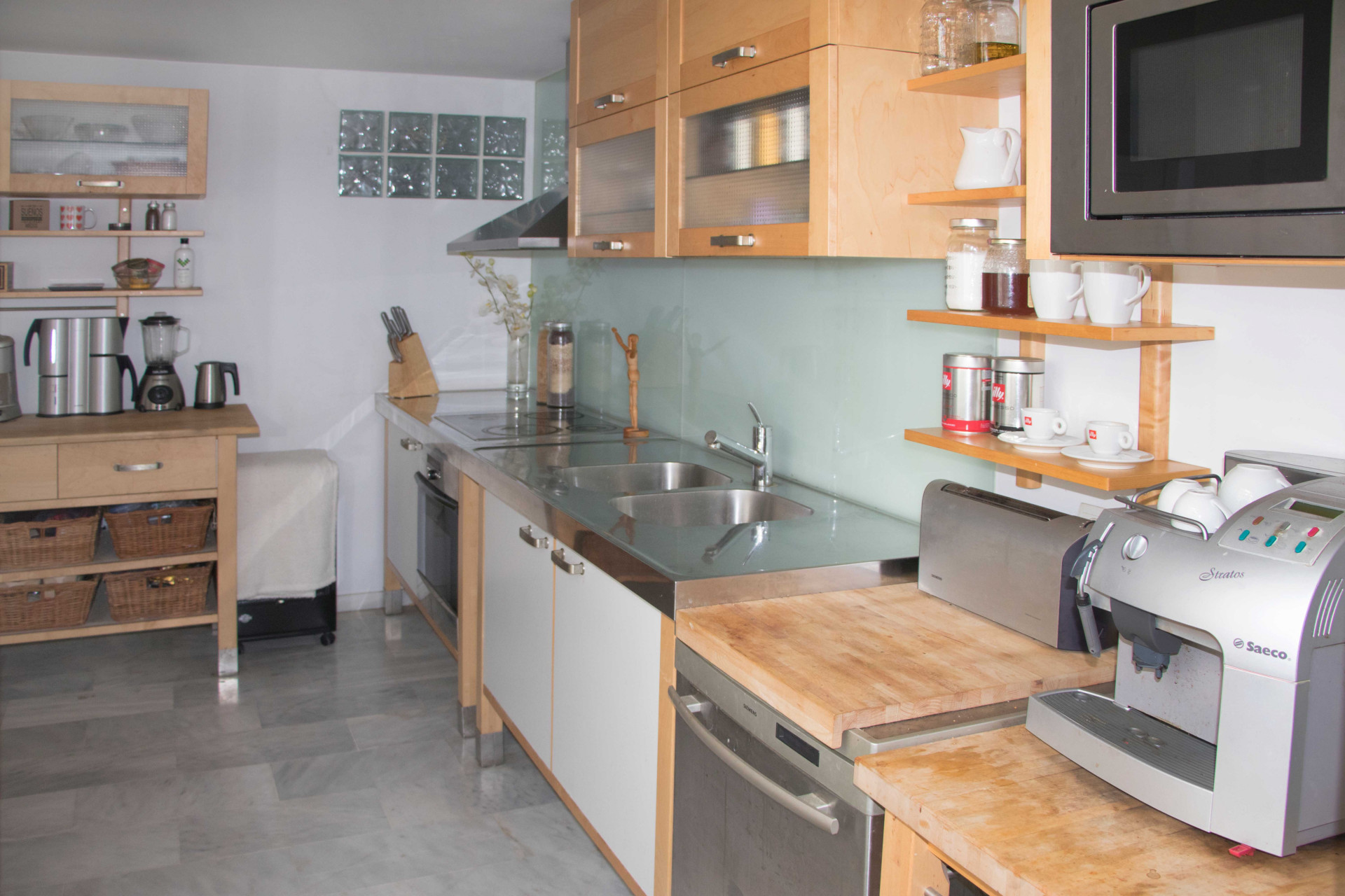 Wystrój apartamentu utrzymany jest w klimacie luksusowym jasnym , na podłogach położony jest marmur, kuchnia jest nowocześnie wyposażona.