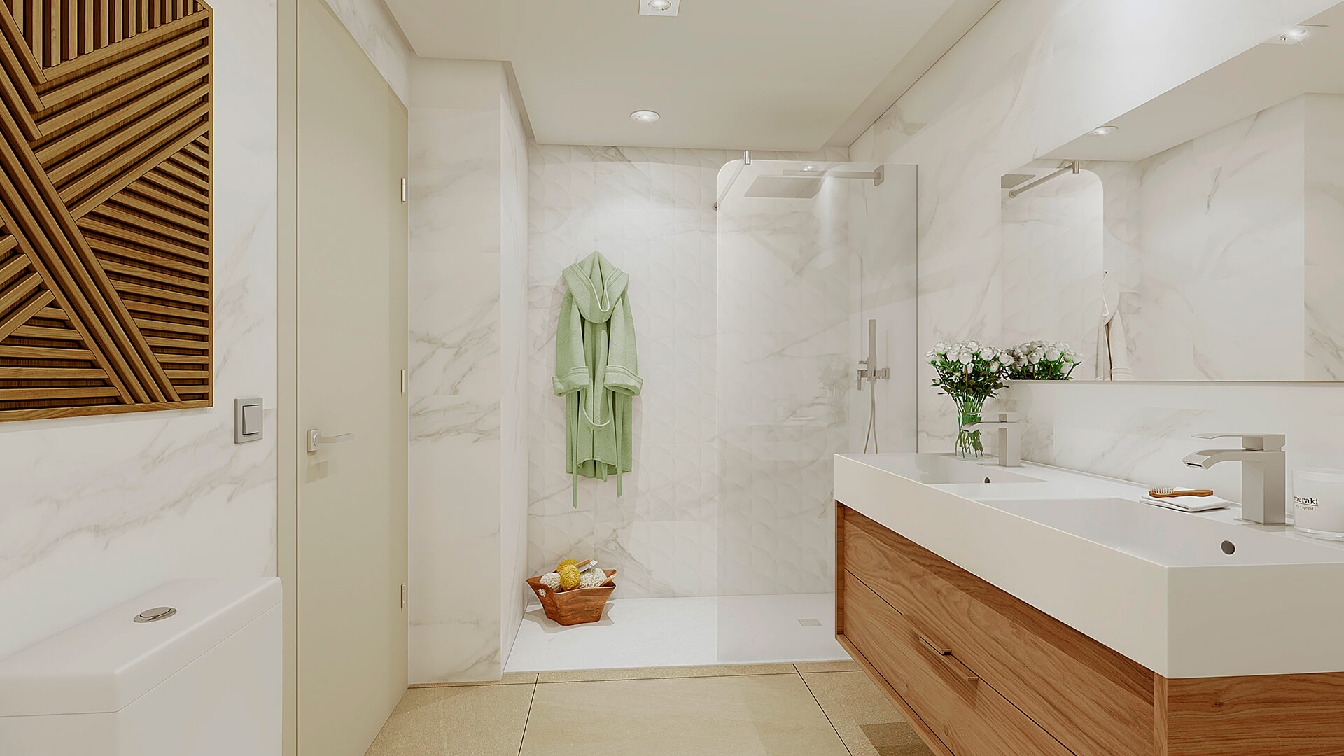 Wszystkie nieruchomości będą miały duże tarasy z przeszklonymi ścianami, które pozwolą na optymalne wykorzystanie przestrzeni niezależnie od pogody. Apartamenty na parterze będą miały prywatne ogrody, z których roztaczać się będzie widok na basen, ogrody ośrodka, pole golfowe i piękną okolicę.