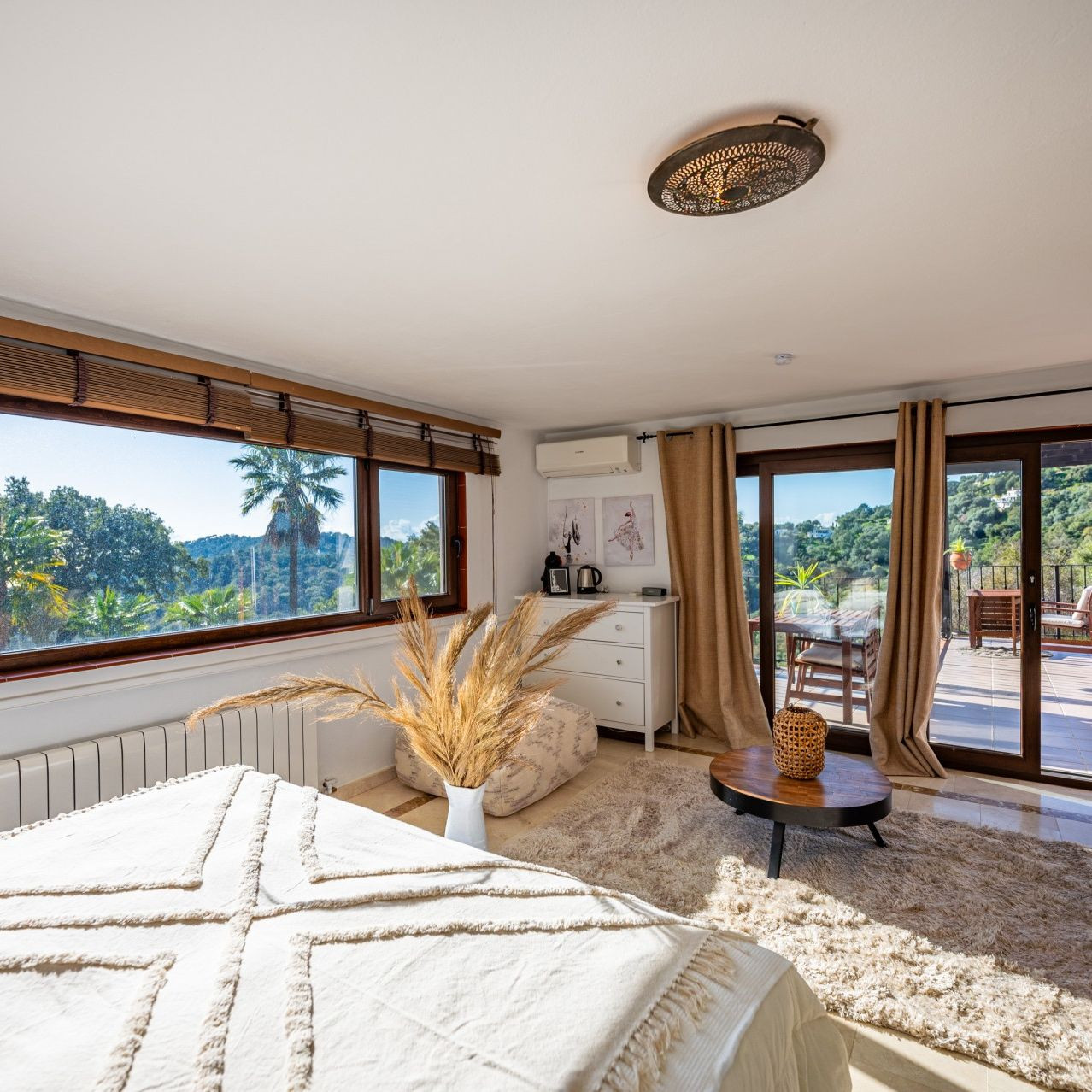 Dom rystykalny z apartamentami gościnnymi i zapierającym dech w piersiach widokiem na morze w Casares, w Andaluzji. Dom położony jest na wzgórzach wokół Casares, prawdziwie wyjątkowym raju! Dostęp do niego przez łagodną krętą górską drogę w dobrym stanie, w większości betonową. Oszałamiające naturalne otoczenie z 300-letnimi dębami korkowymi. Prywatny, ale nie odizolowany.
