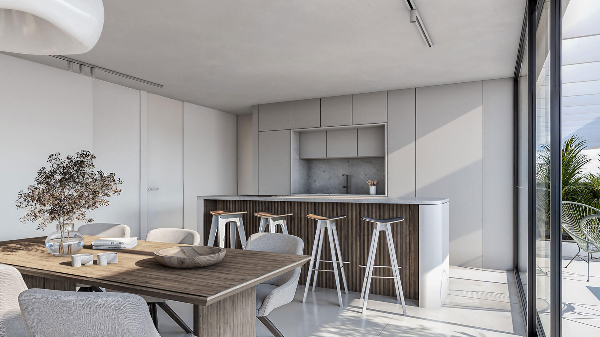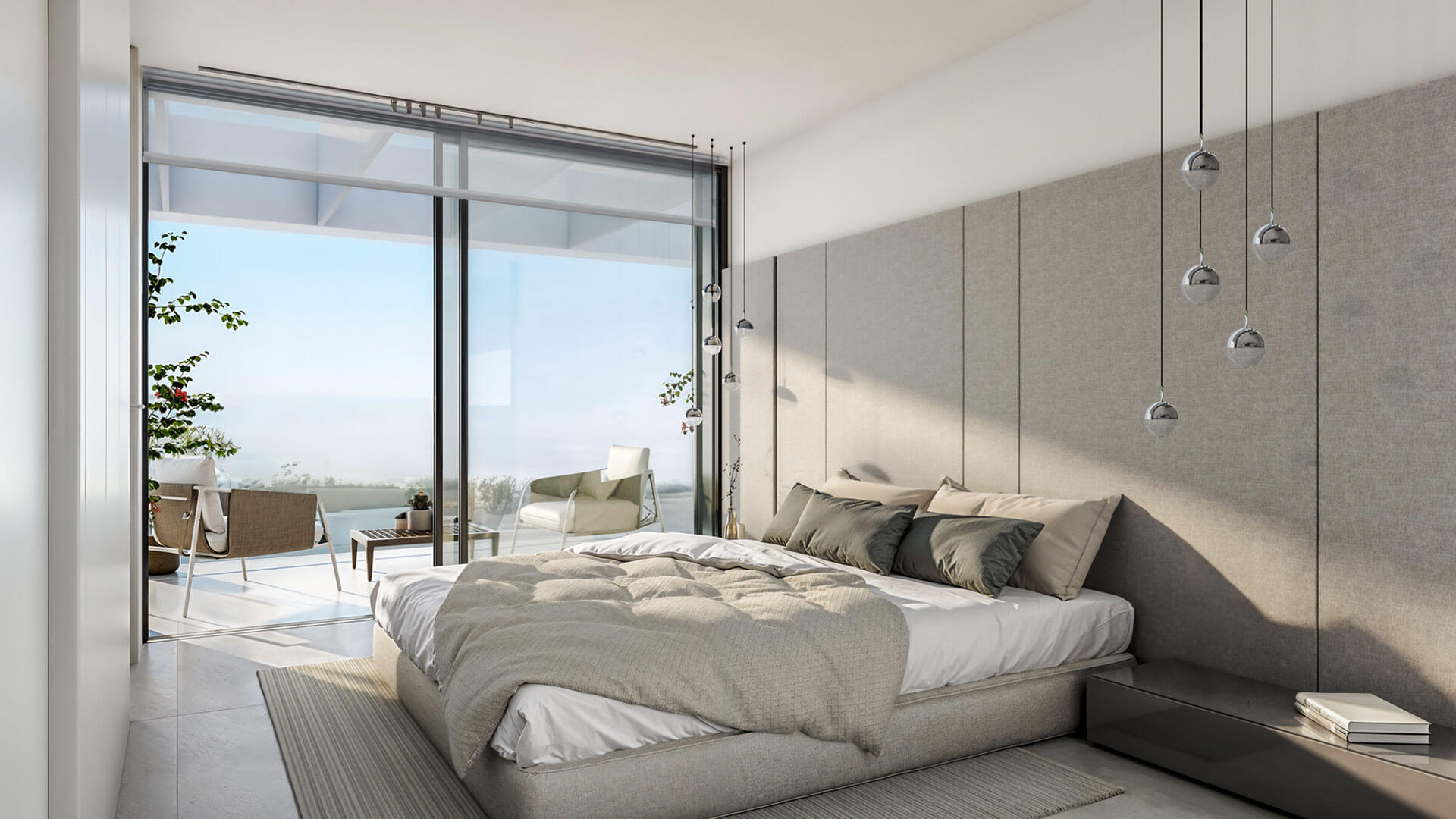 Każdy apartament został starannie zaprojektowany z przestronnym, otwartym planem, który pozwala na wpadanie naturalnego światła przez duże okna od podłogi do sufitu, tworząc jasną i przestronną atmosferę. Rozległe prywatne tarasy oferują wspaniałe widoki na Morze Śródziemne, idealne do relaksu lub spotkań towarzyskich na świeżym powietrzu.