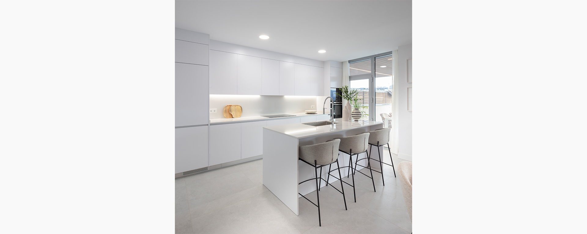 Idealnie zorientowane, z całkowicie otwartą przestrzenią, do wyboru są apartamenty na parterze z przestronnymi tarasami i spektakularnymi ogrodami, a także penthousy z zapierającymi dech w piersiach widokami panoramicznymi, oferującymi niezrównane widoki na pole golfowe i okolicę, idealne do podziwiania długich letnich zachodów słońca.